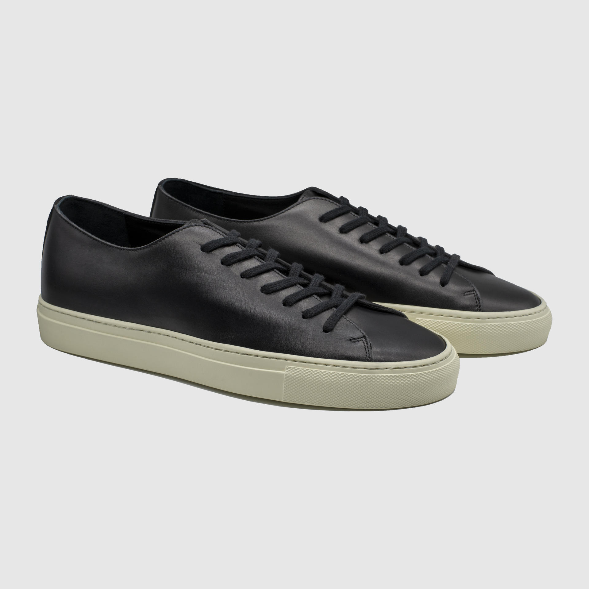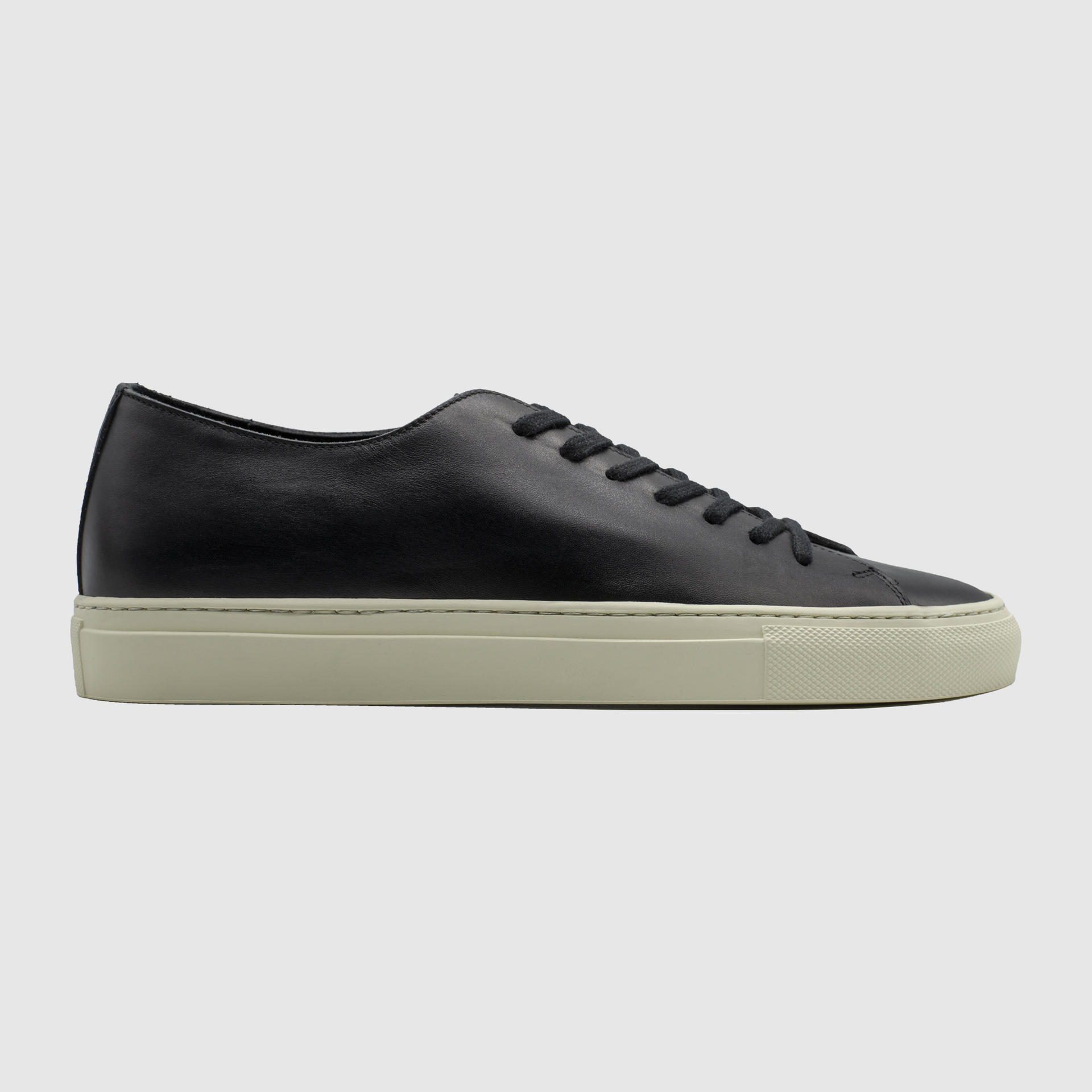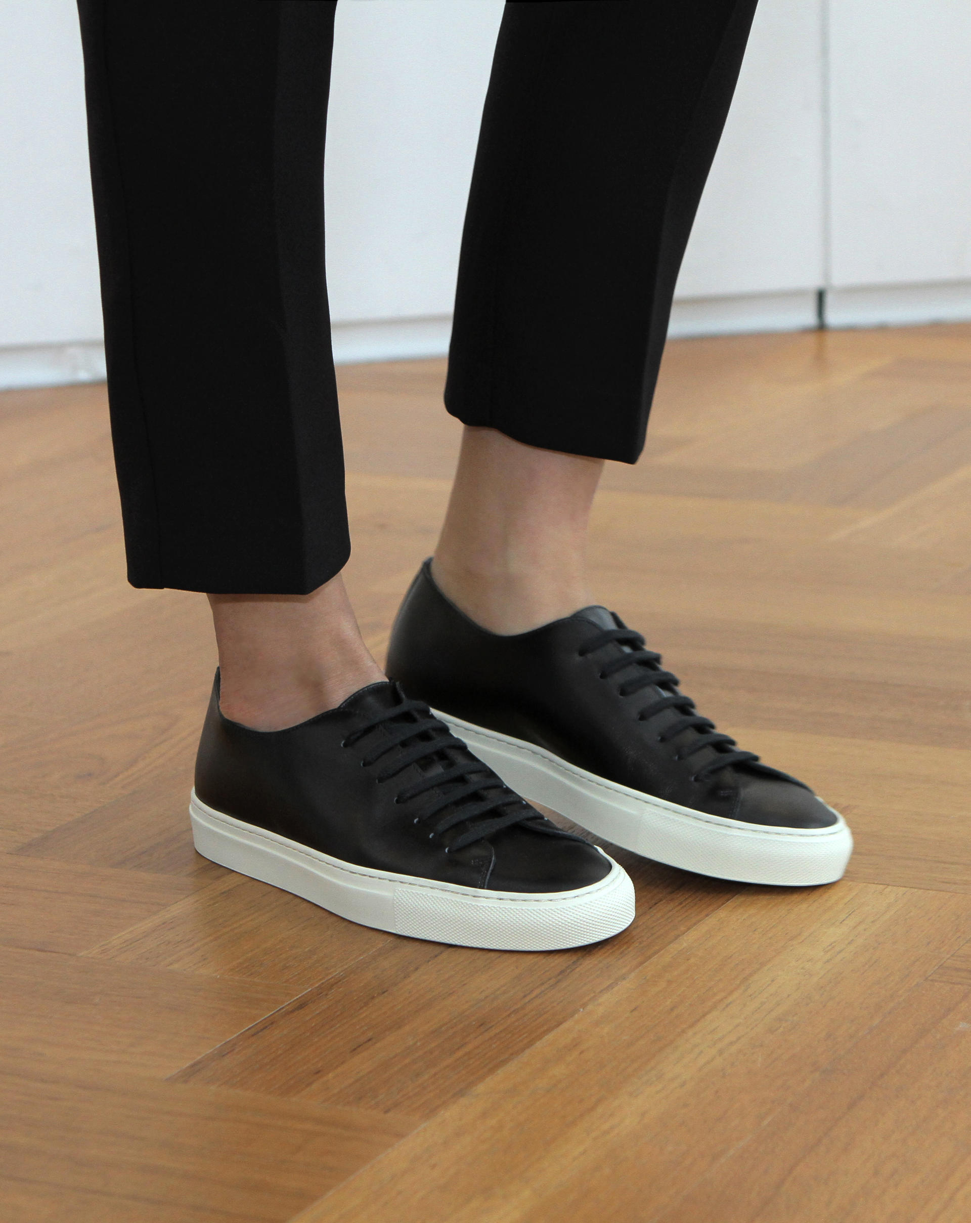 Low-top calf leather sneakers in zet black. Round toe. Lace-up closure. Classic seven lace holes. Signature moon stamped on the hidden area of the shoe tongue. Stitch reinforced rubber sole. Suede and calf leather lining. Tonal stitching. Heel 3cm.