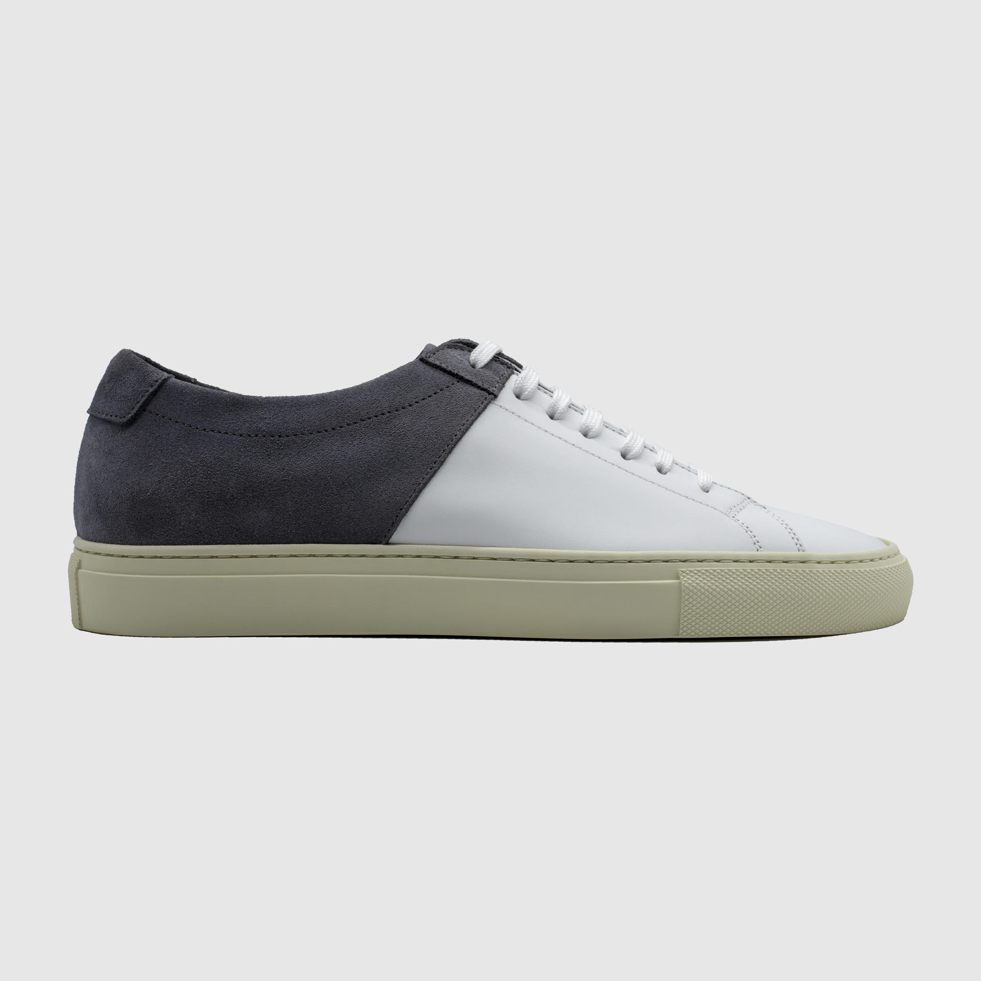 Low-top calf leather sneakers in grey. Round toe. Lace-up closure. Classic seven lace holes. Signature moon stamped on the hidden area of the shoe tongue. Stitch reinforced rubber sole. Suede and calf leather lining. Tonal stitching. Heel 3cm.