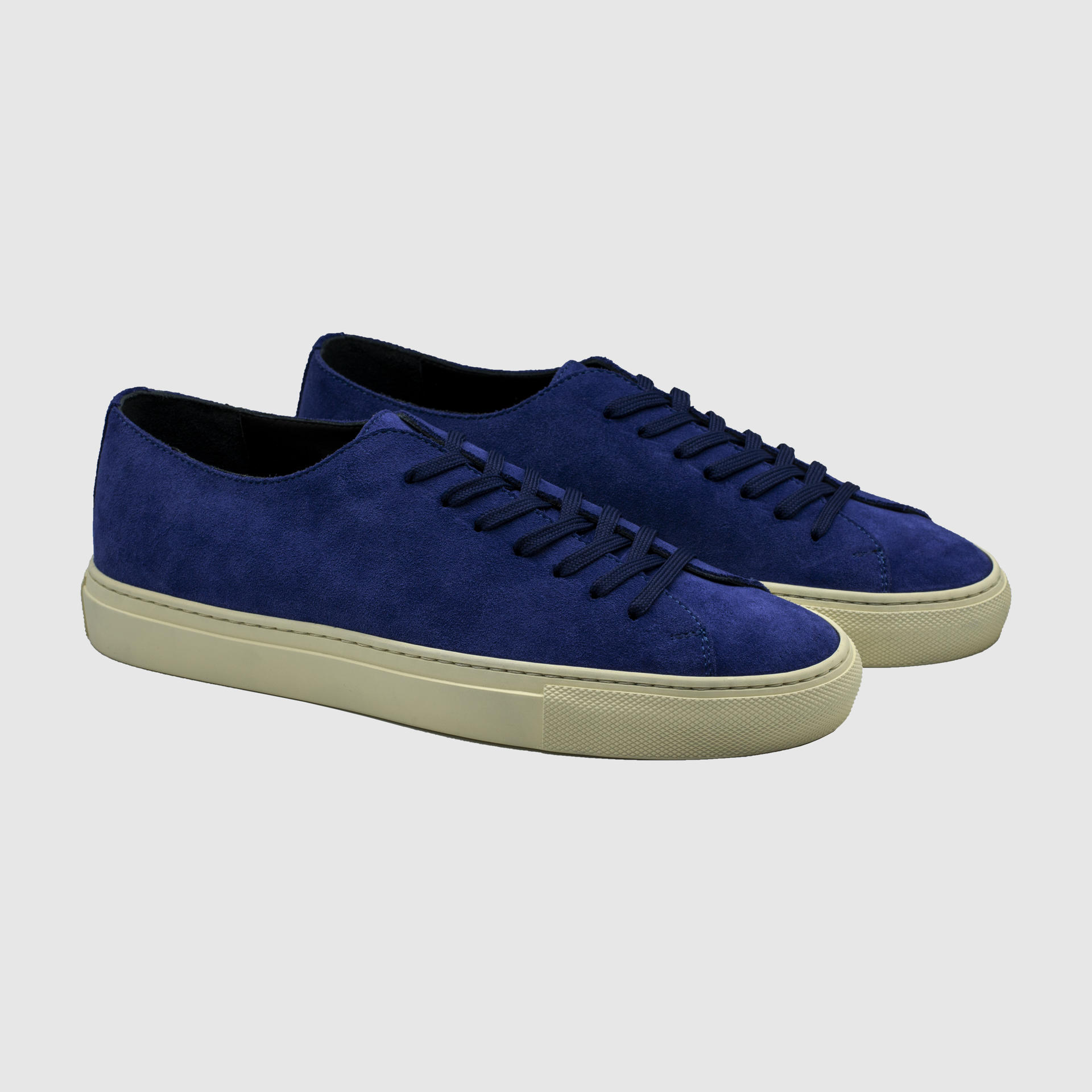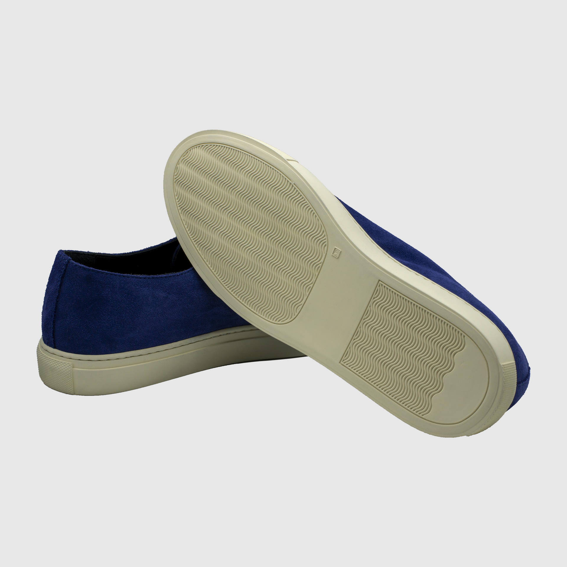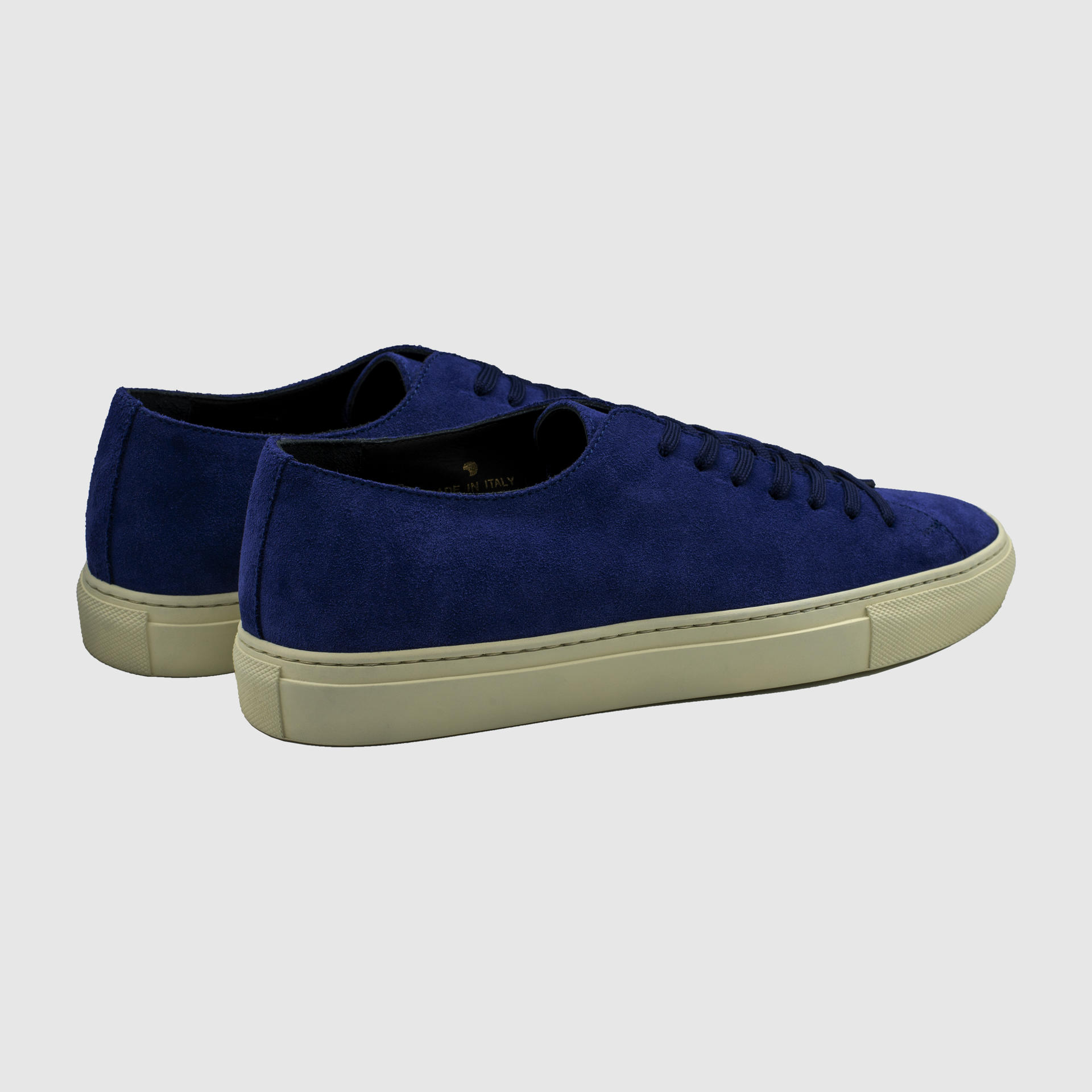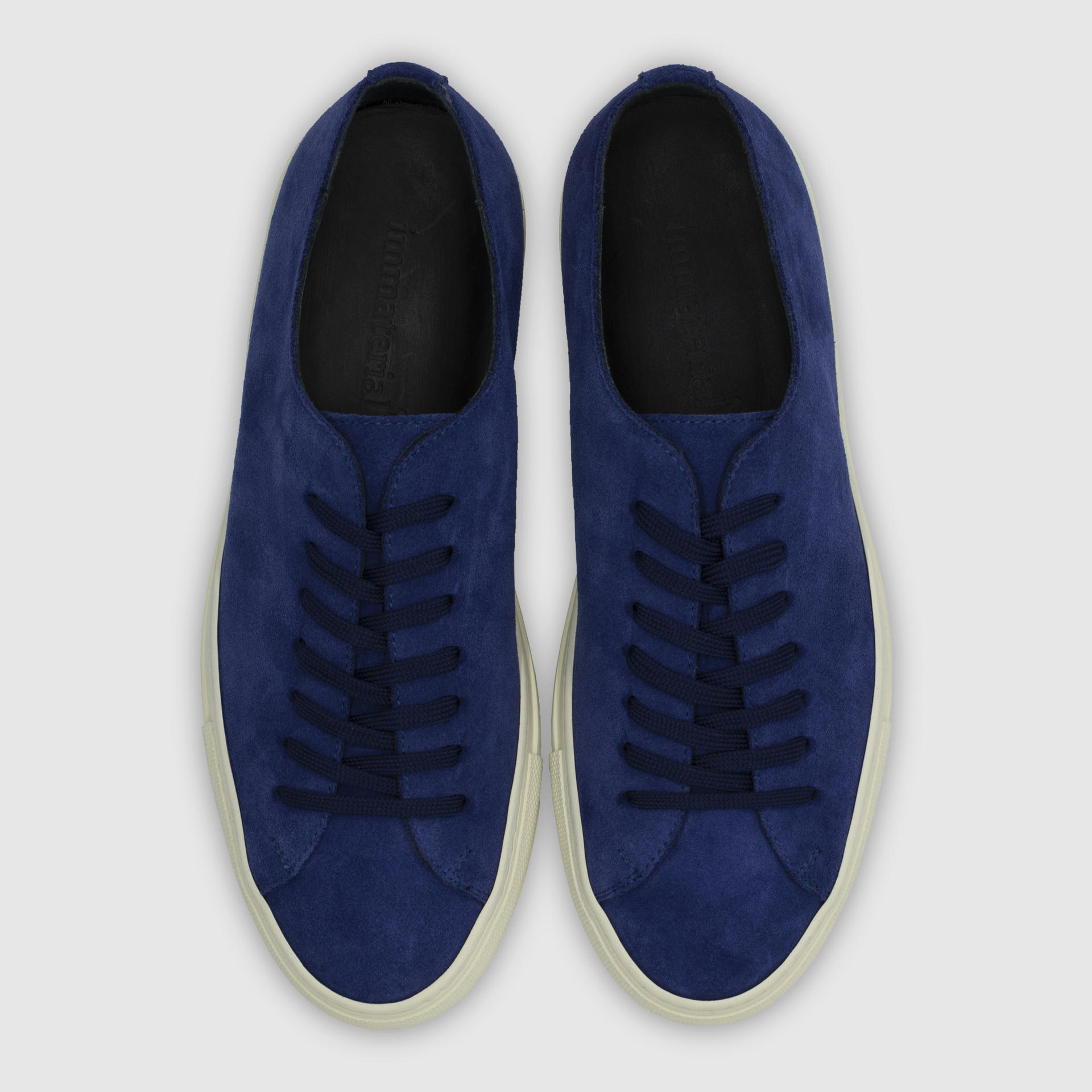 Low-top calf suede sneakers in vintage ink. Round toe. Lace-up closure. Classic seven lace holes. Signature moon stamped on the hidden area of the shoe tongue. Stitch reinforced rubber sole. Suede and calf leather lining. Tonal stitching. Heel 3cm.