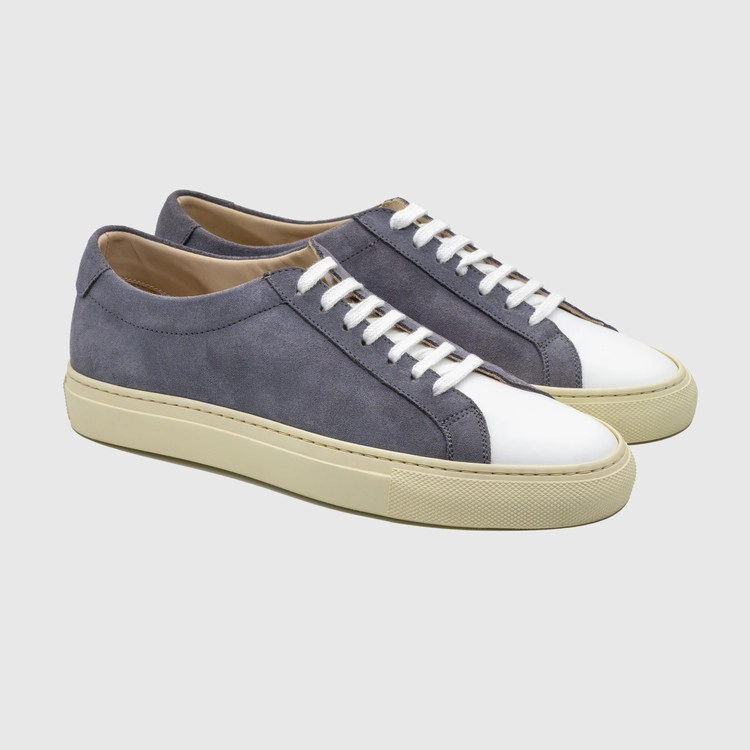 White gray calf leather low-top sneakers, crafted for a refined yet timeless look.