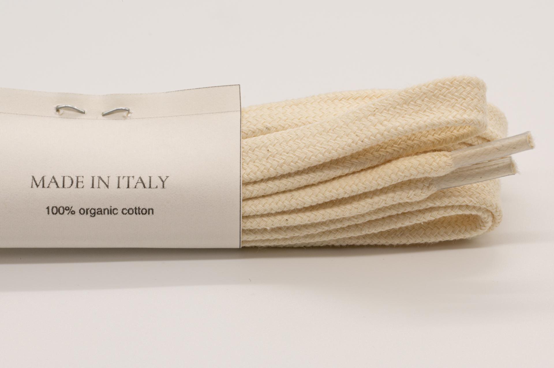 Off-white organic cotton shoelaces, 1200mm in length.