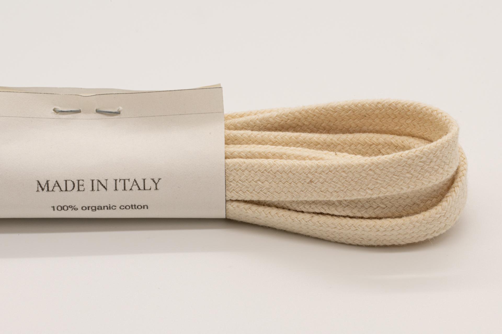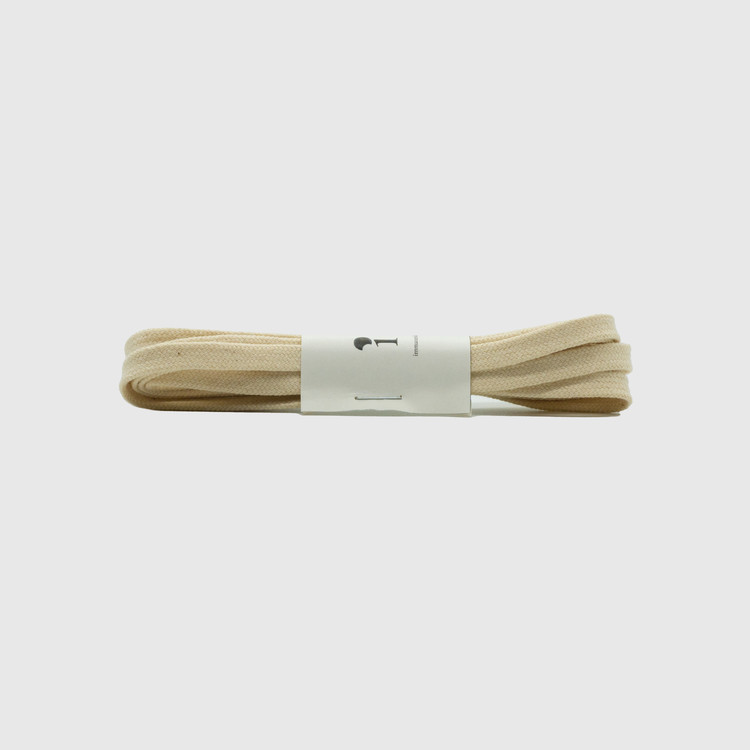 Cream-colored organic cotton shoelaces, 1200mm in length.