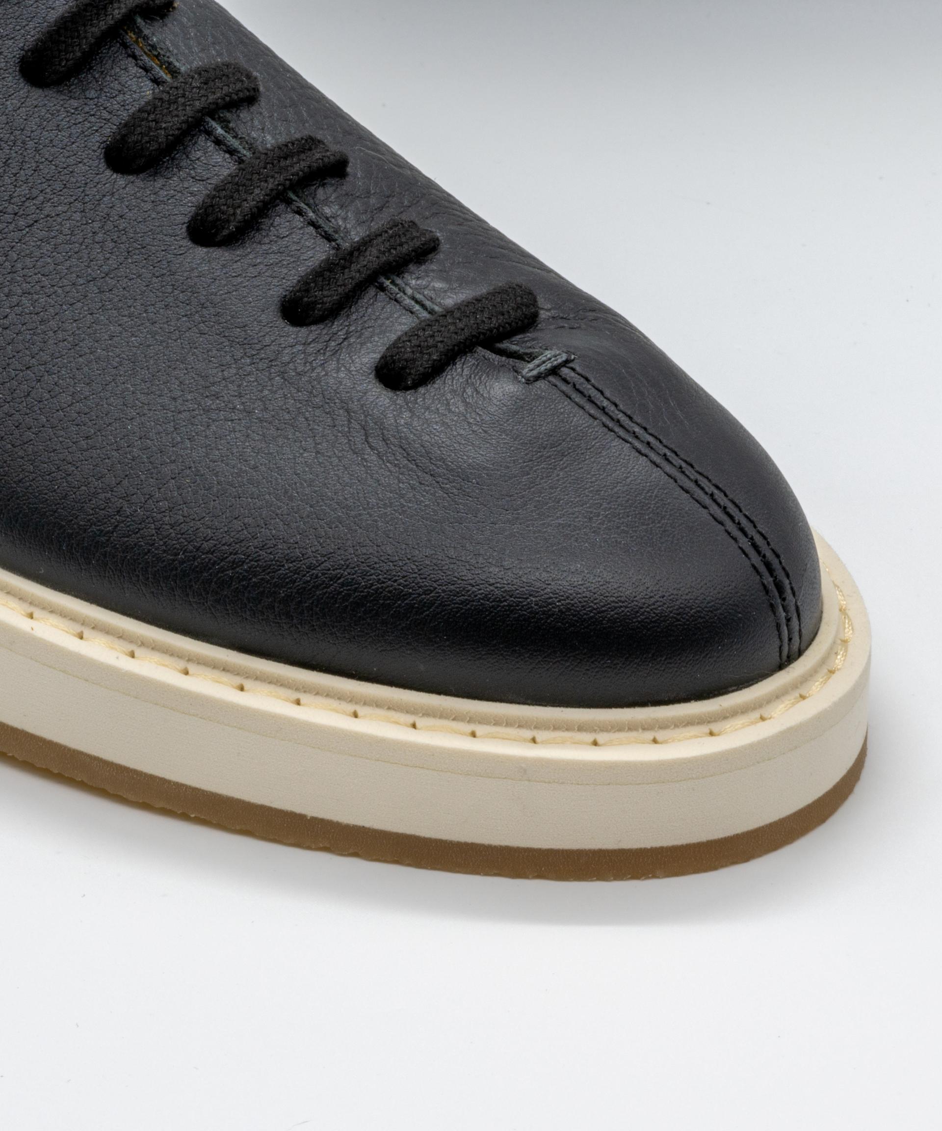 Low-top shrunken calf leather sneakers in black, crafted for a refined yet effortless look.