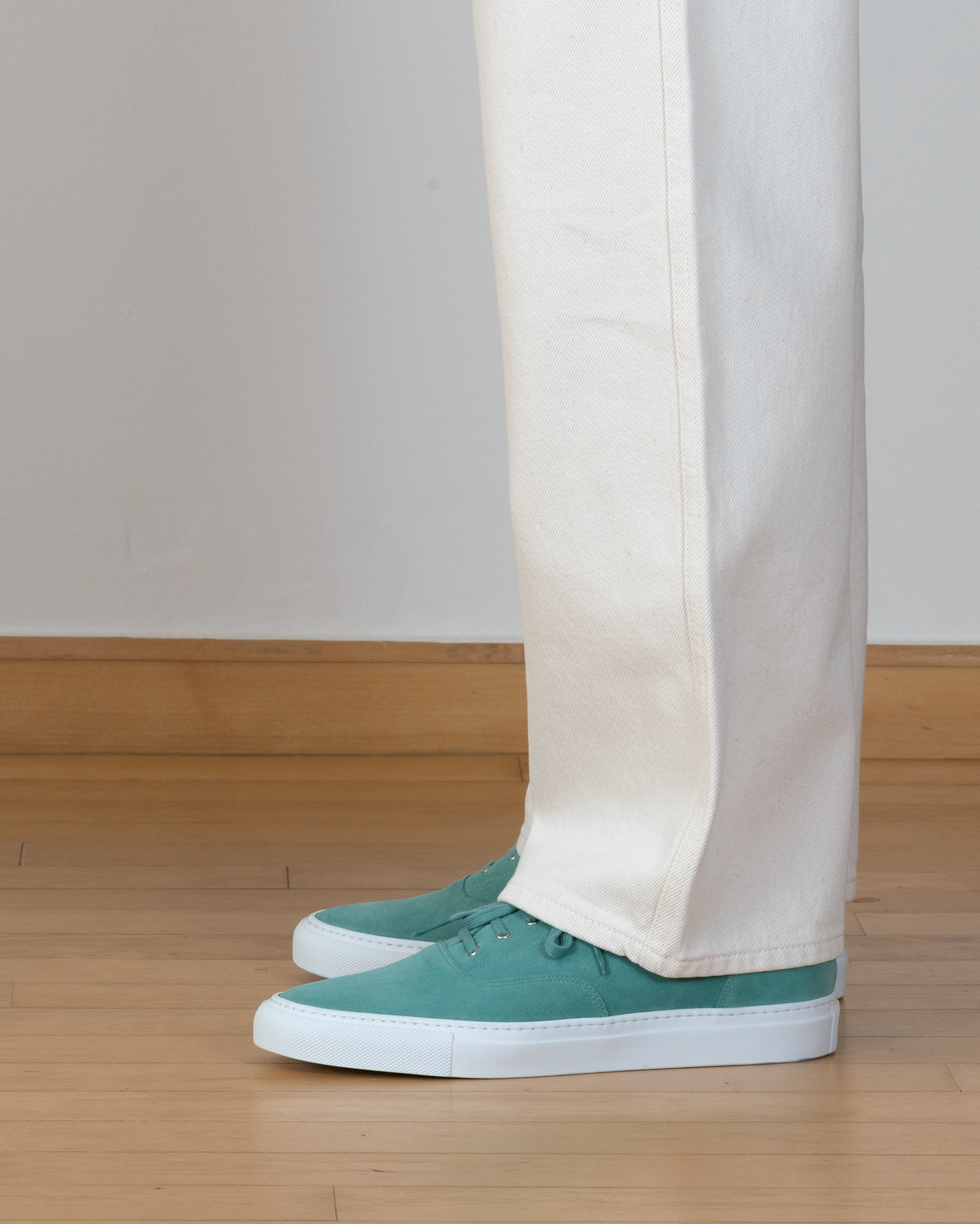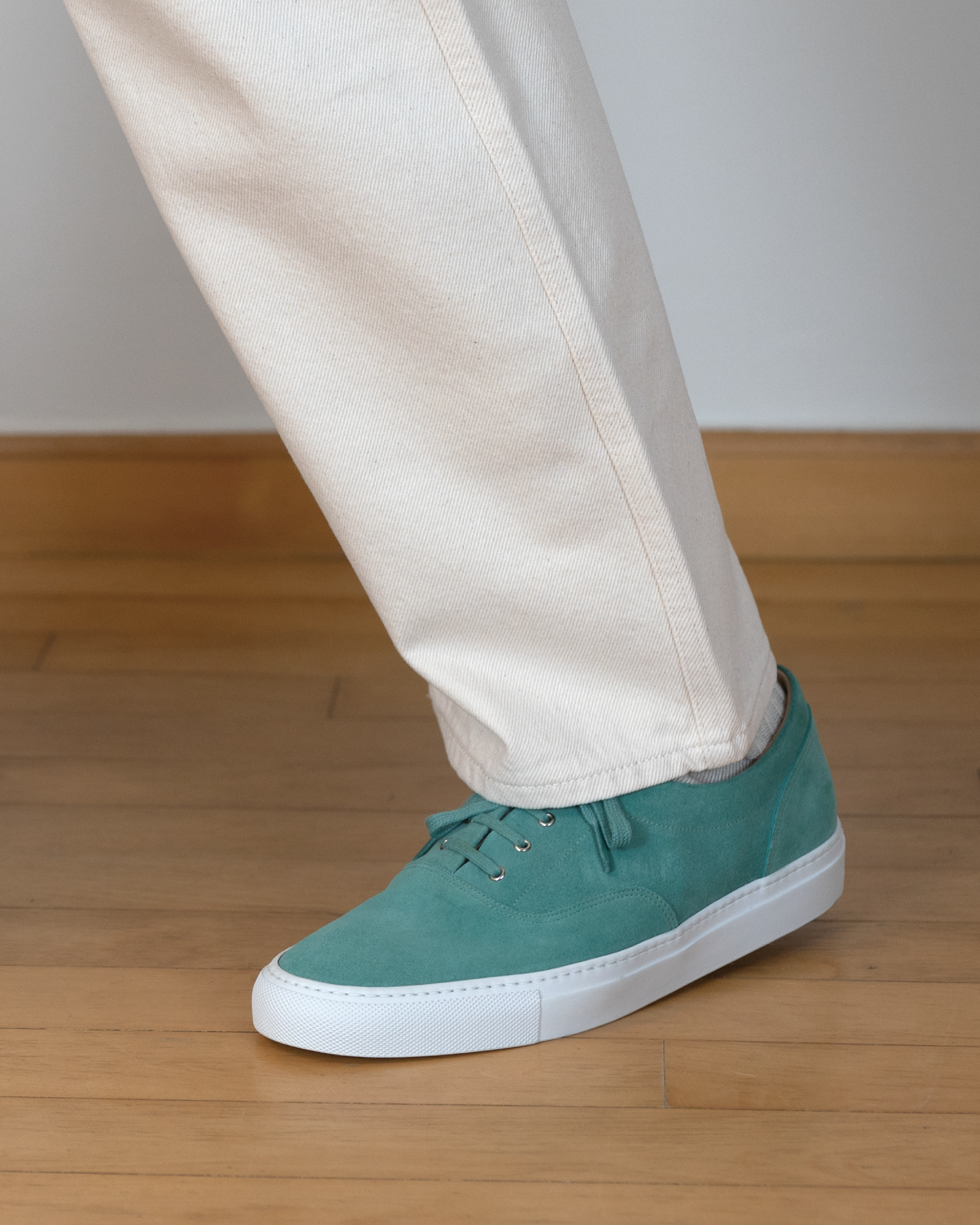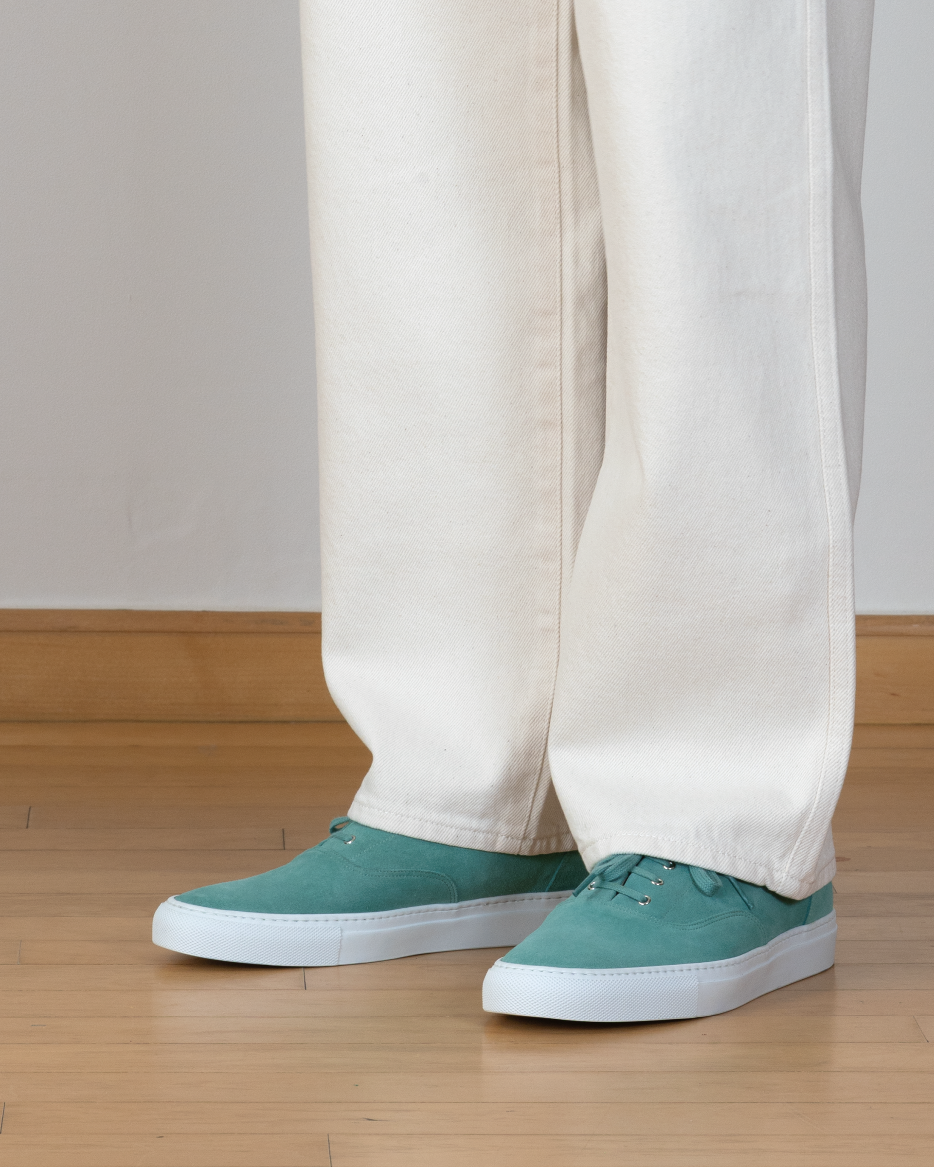 Mint calf suede leather low-top sneakers, crafted for a refined yet timeless look.