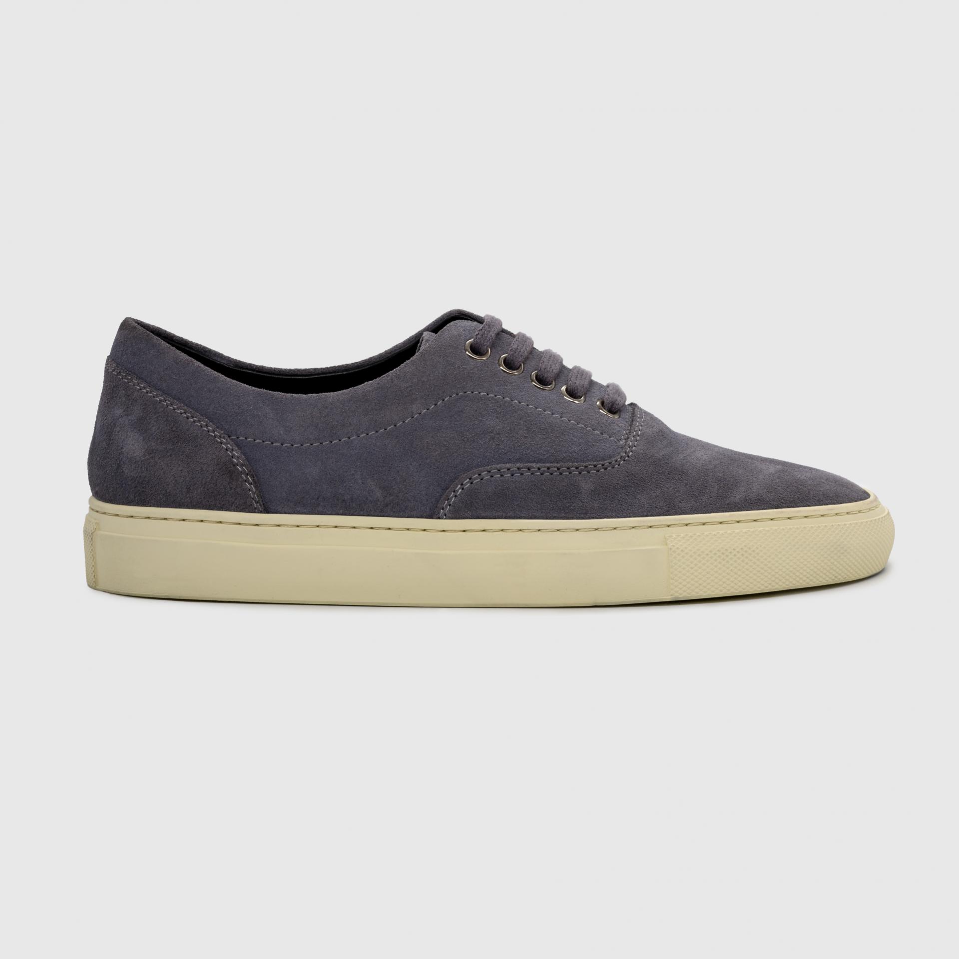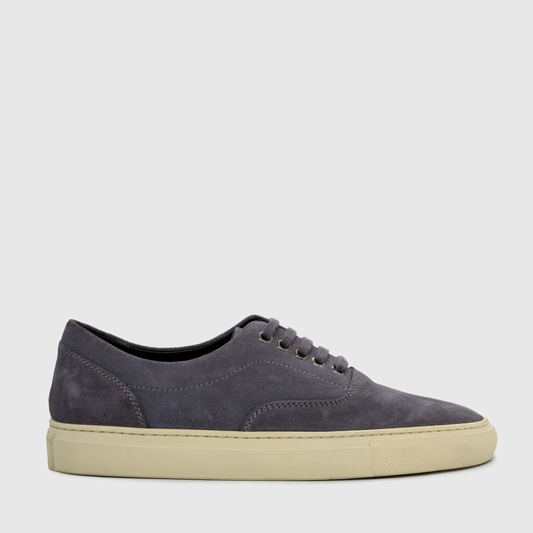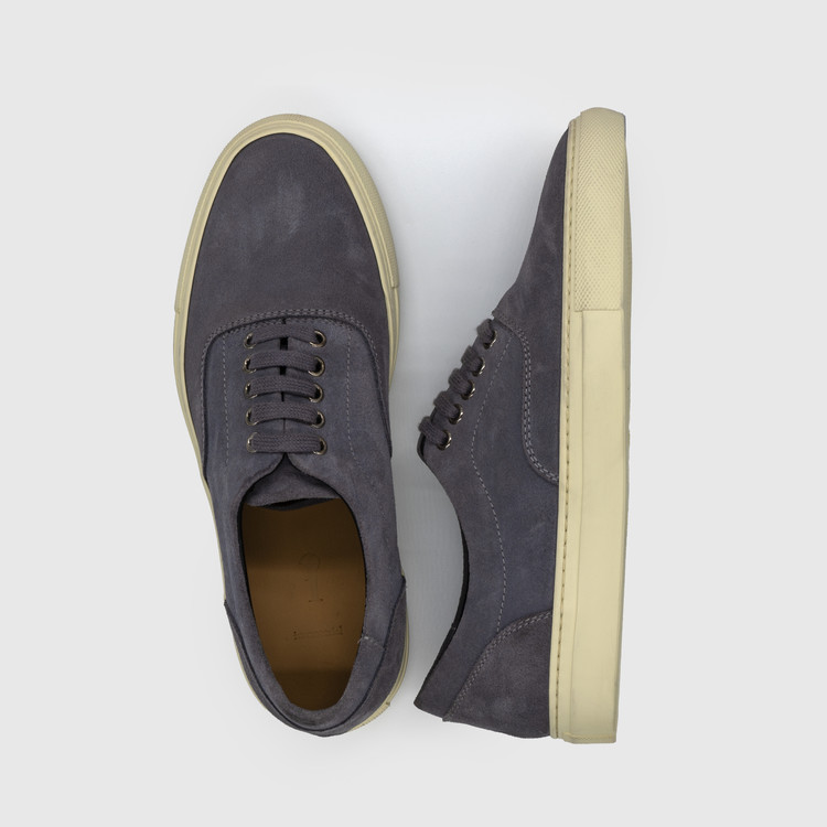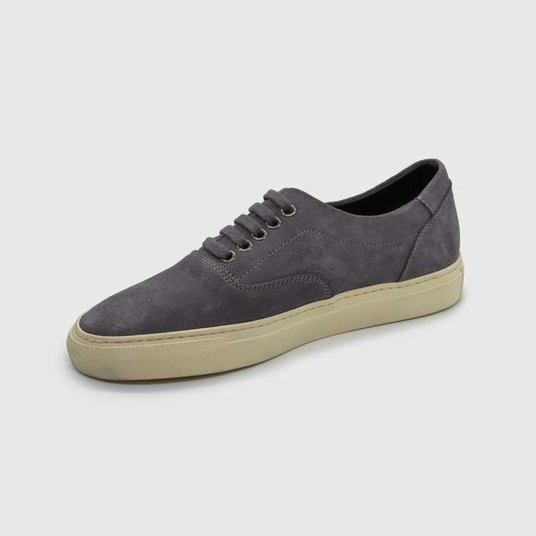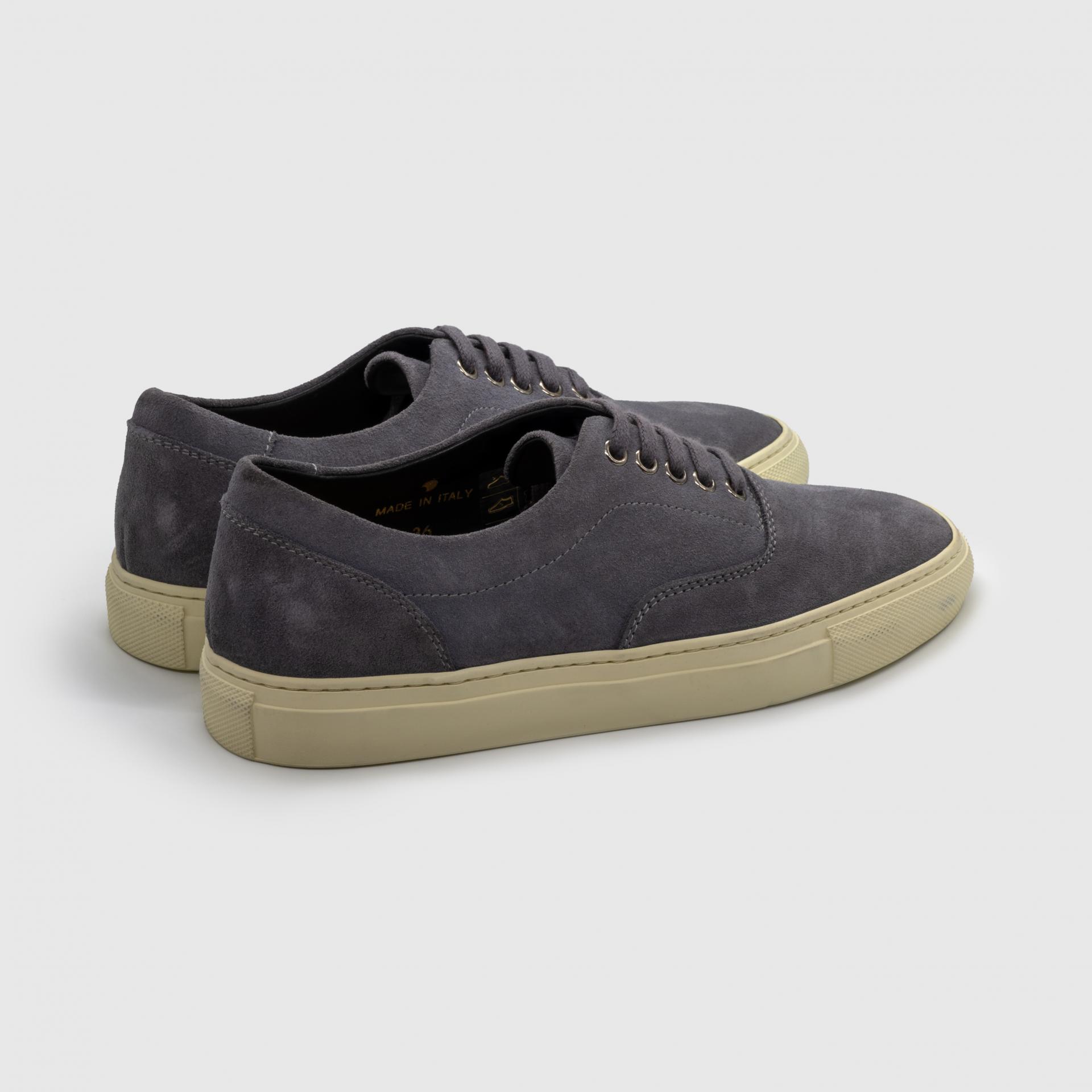 Vintage gray calf suede leather low-top sneakers, crafted for a refined yet timeless look.