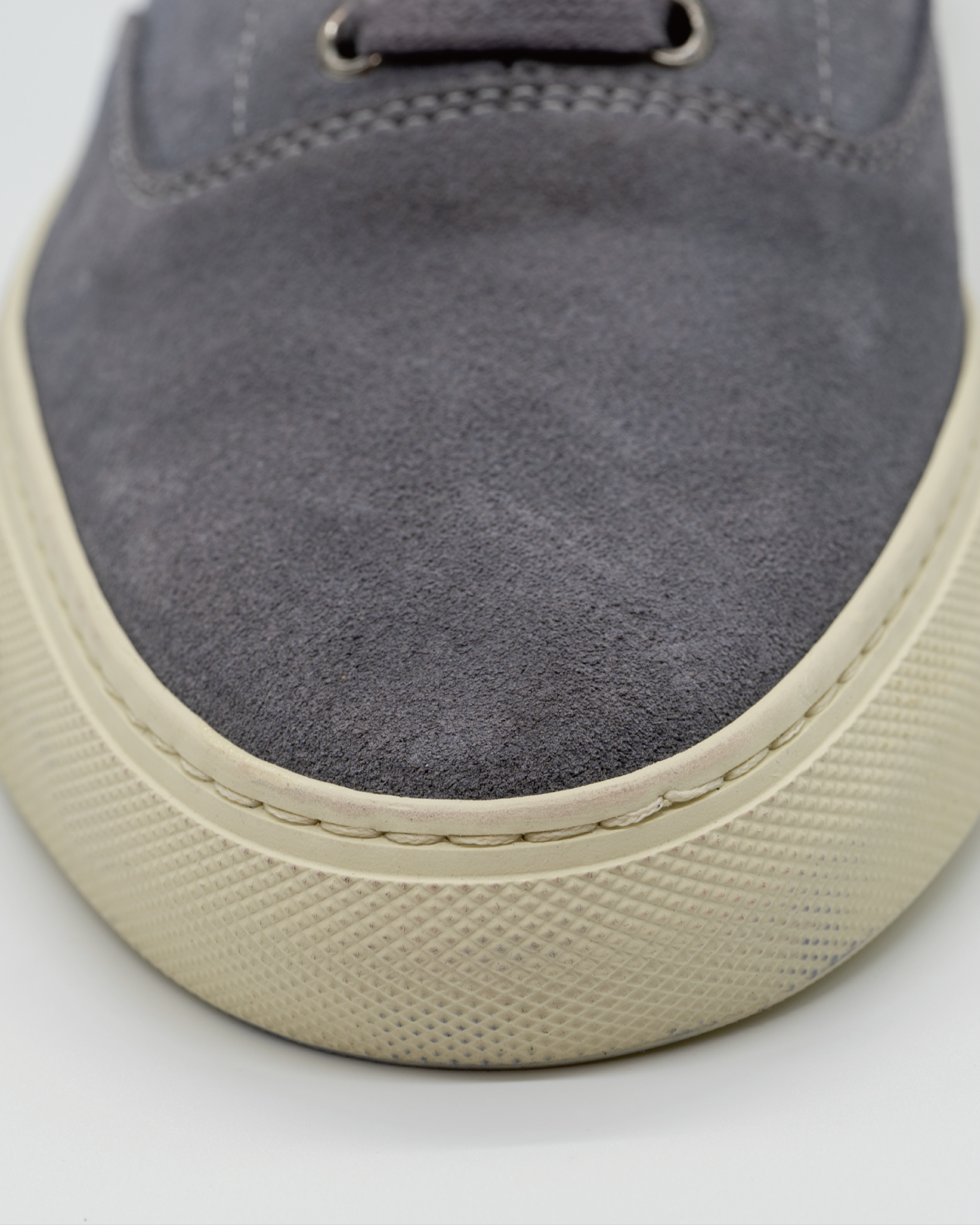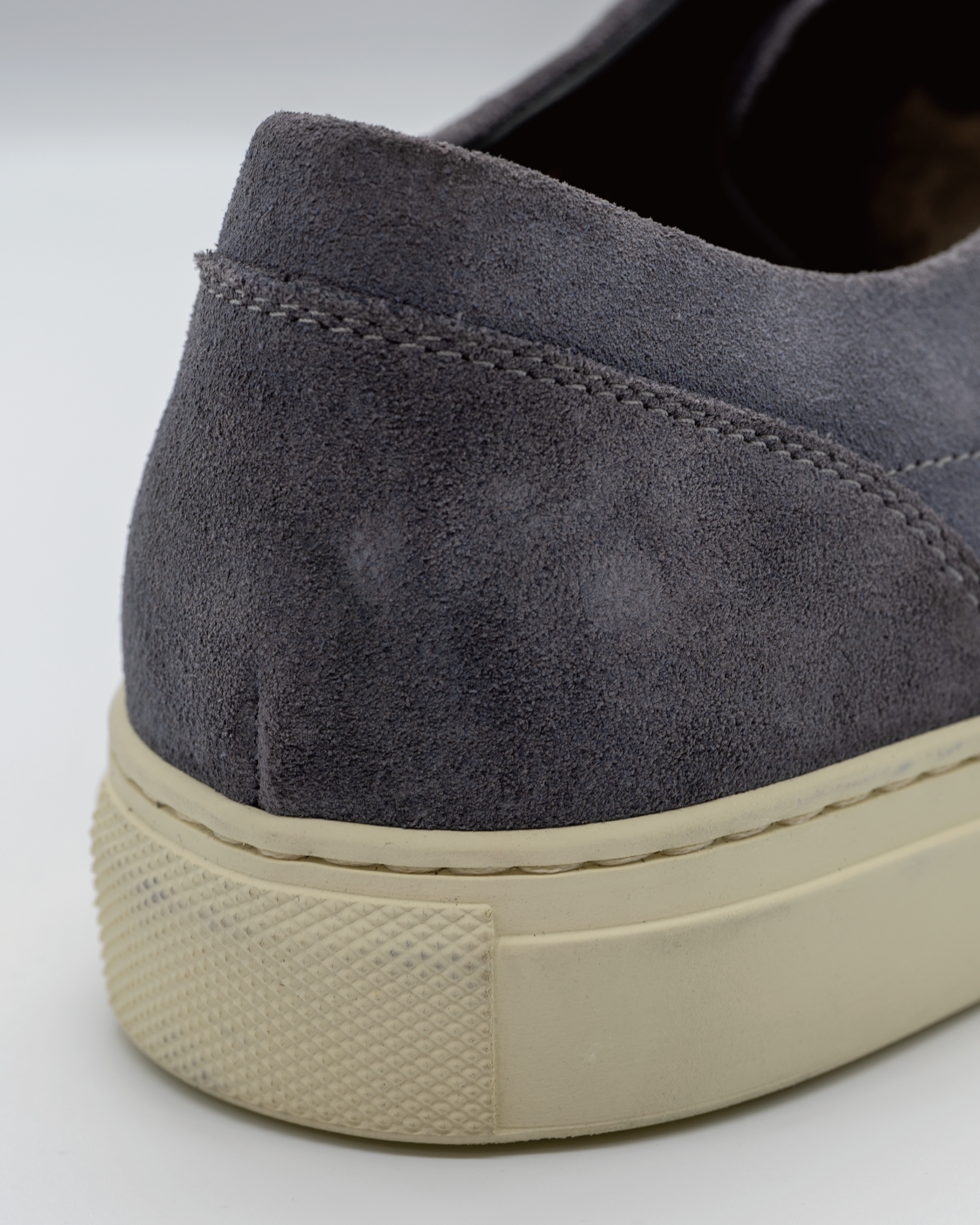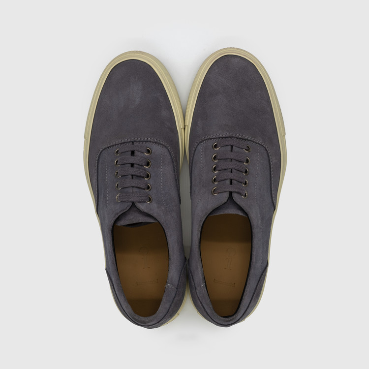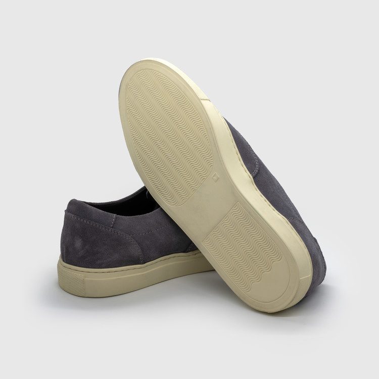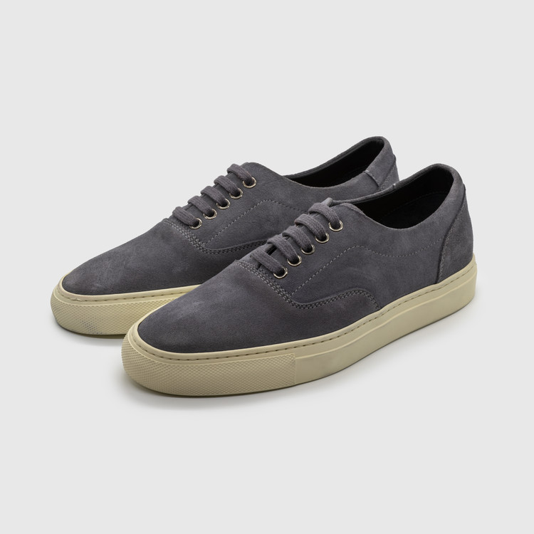 Vintage gray calf suede leather low-top sneakers, crafted for a refined yet timeless look.