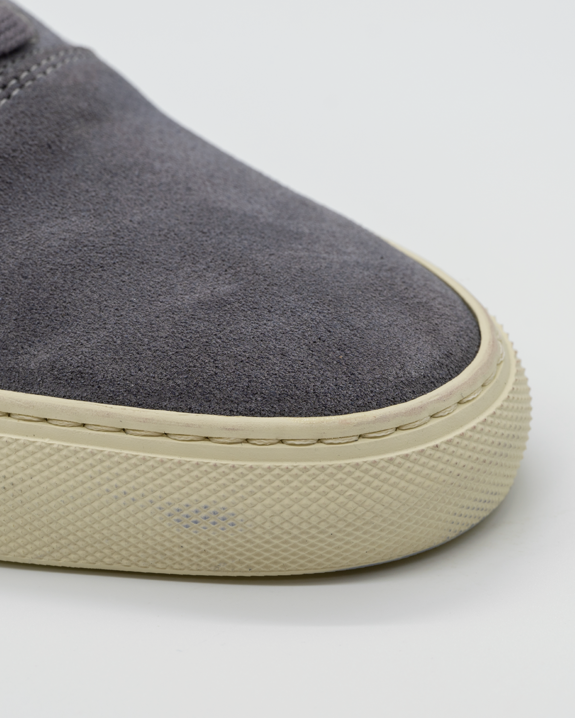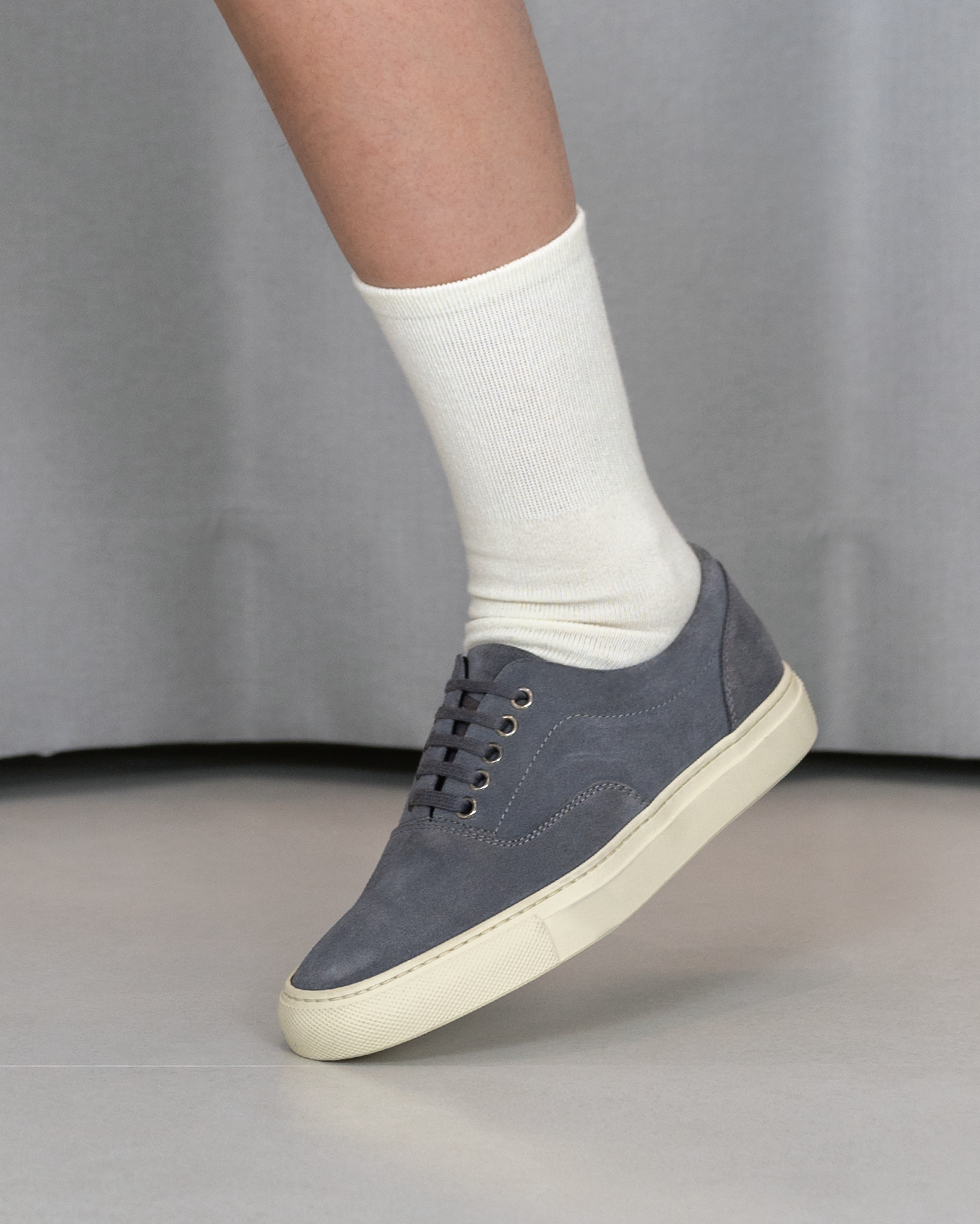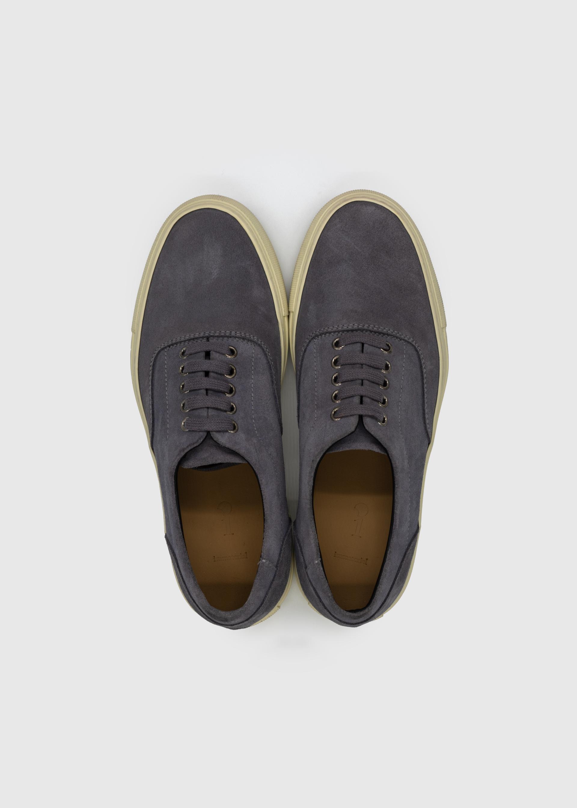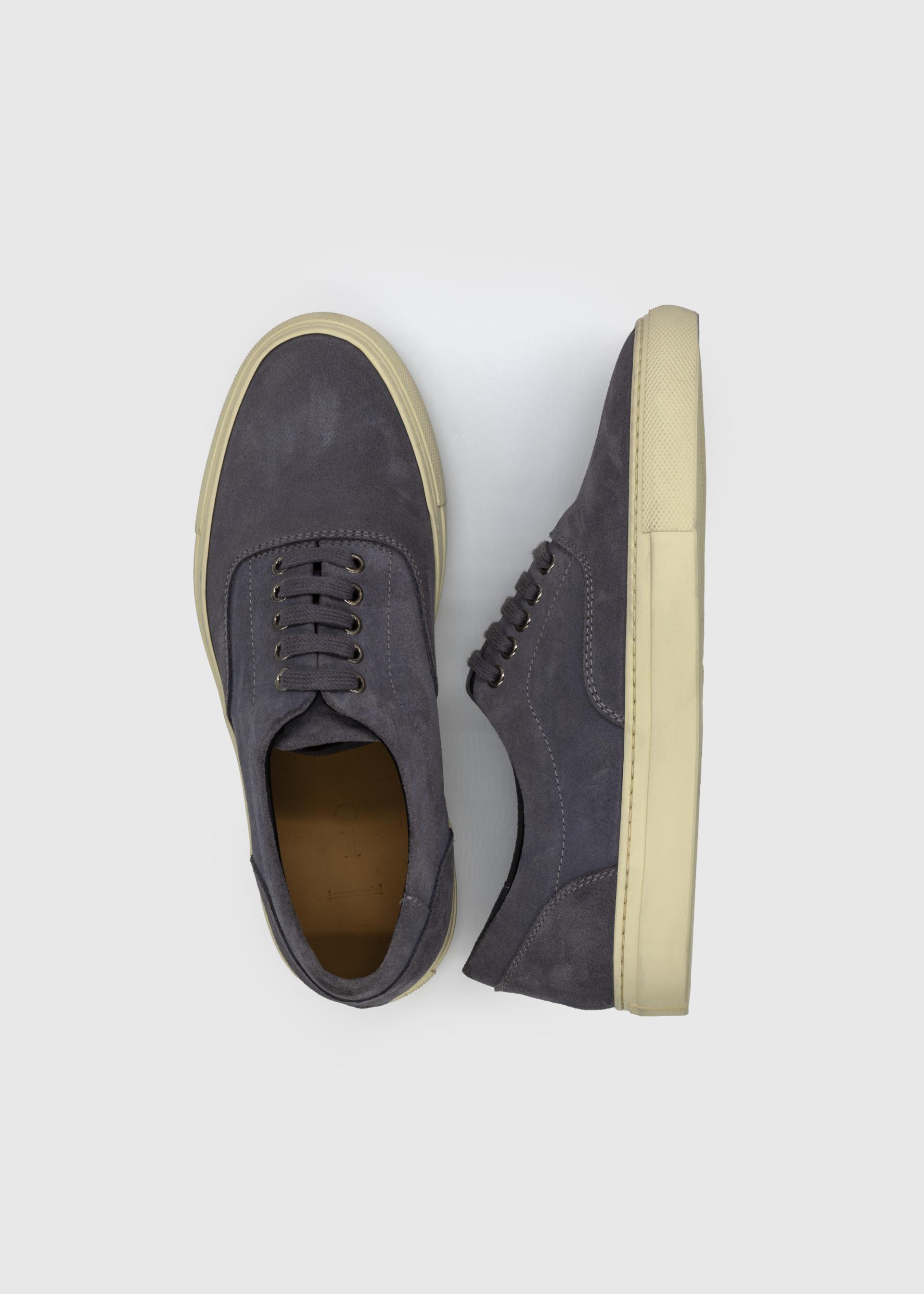 Vintage gray calf suede leather low-top sneakers, crafted for a refined yet timeless look.