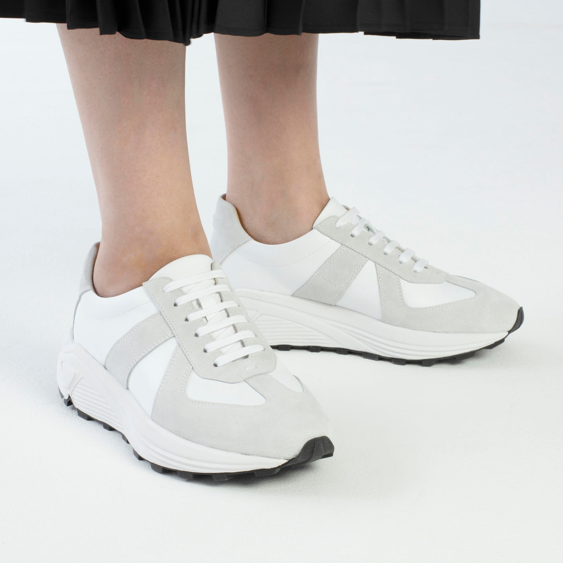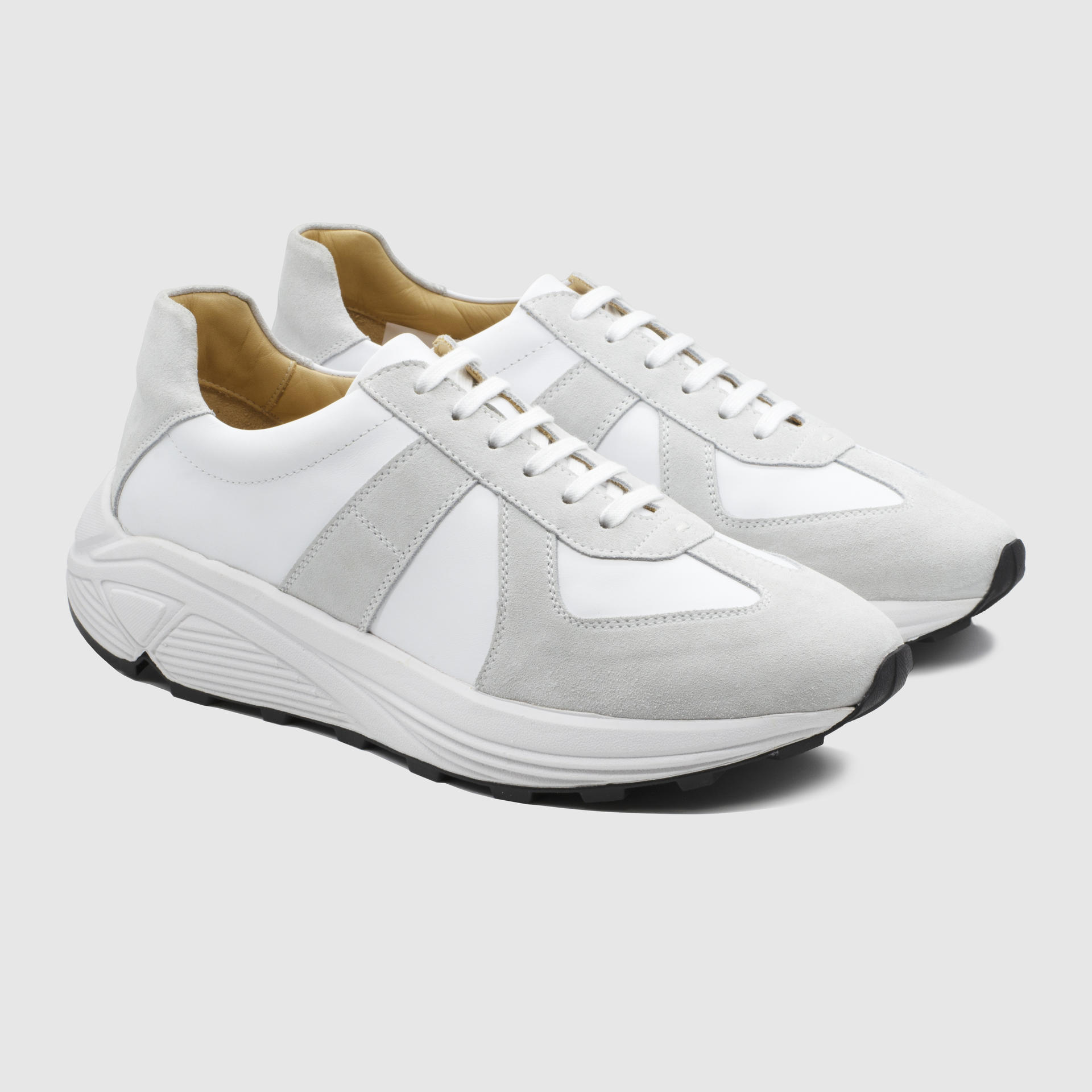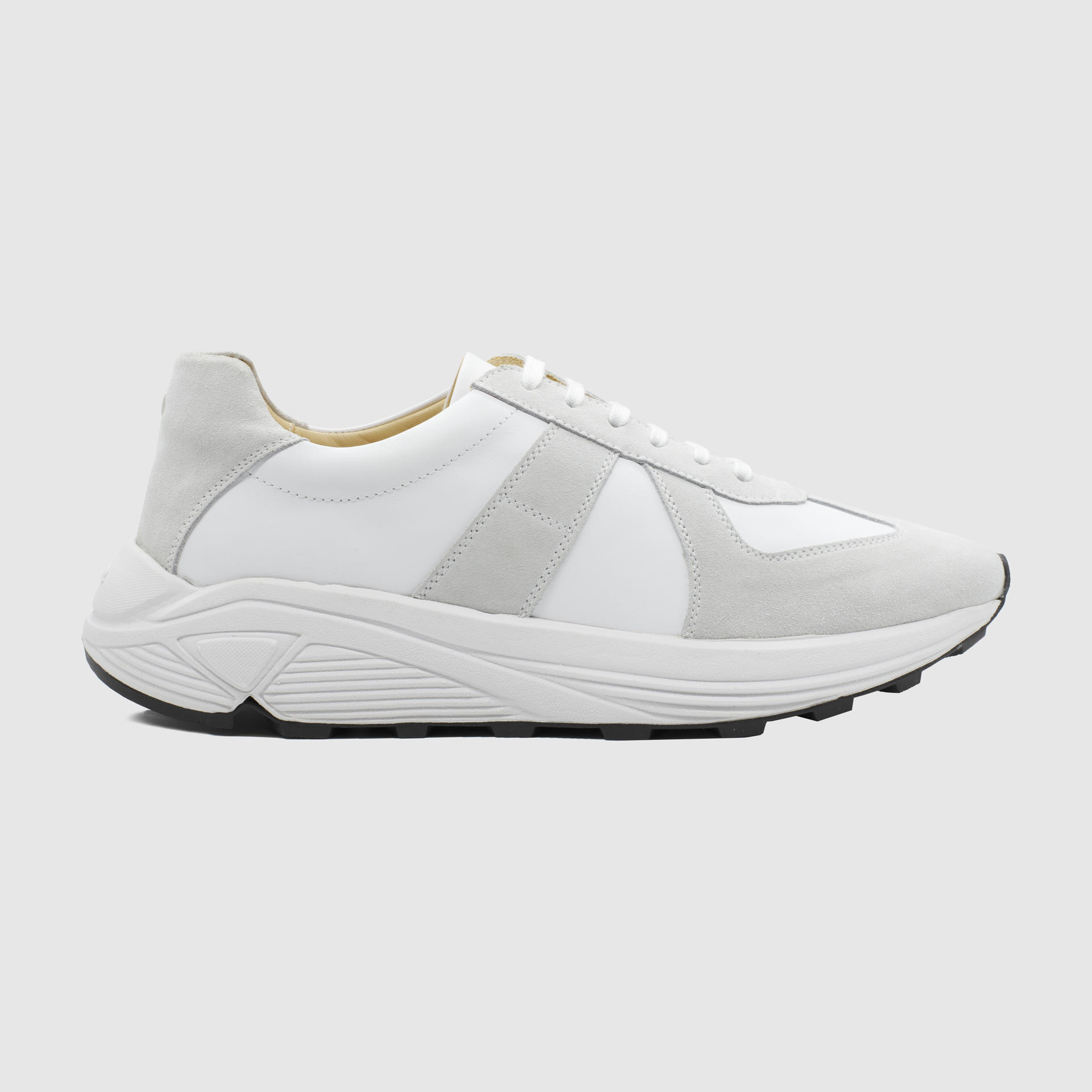 Low-top calf leather runner in white. Round toe. Lace-up closure. Classic six lace holes. Signature 'I' stitching in the back counter. Suede and calf leather lining. Tonal stitching. Heel 5.5cm.