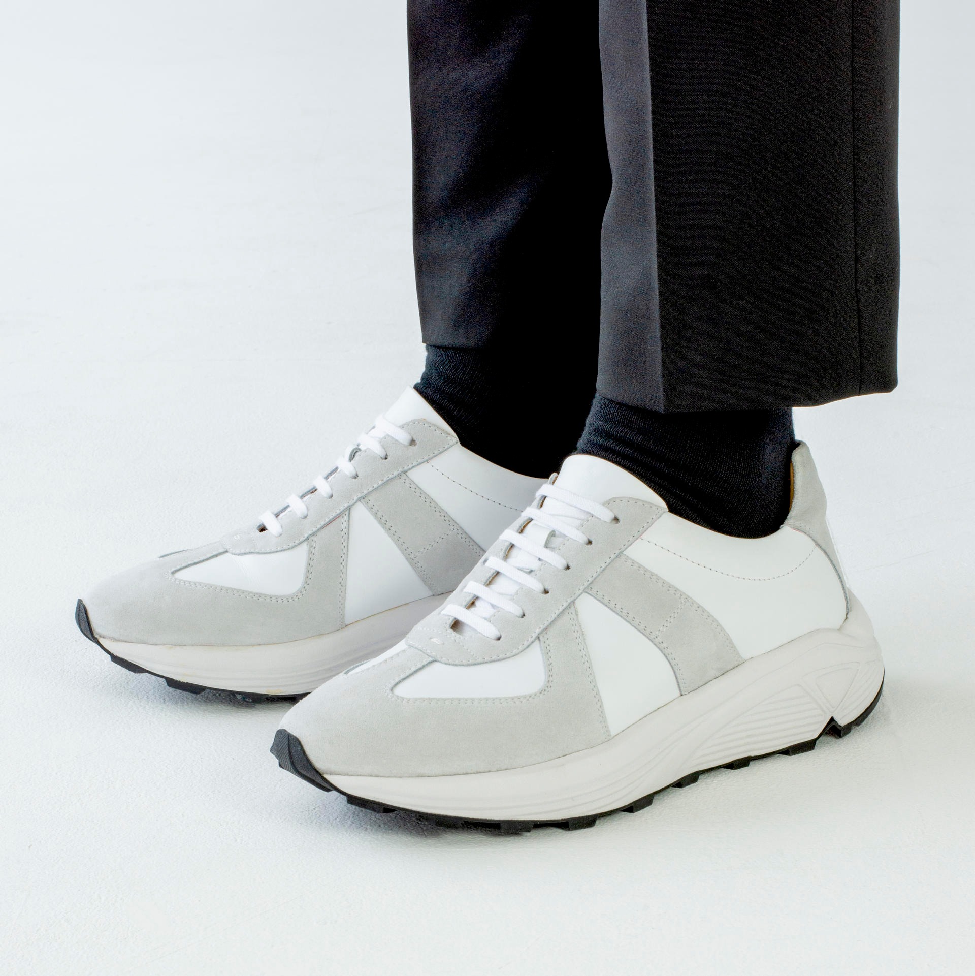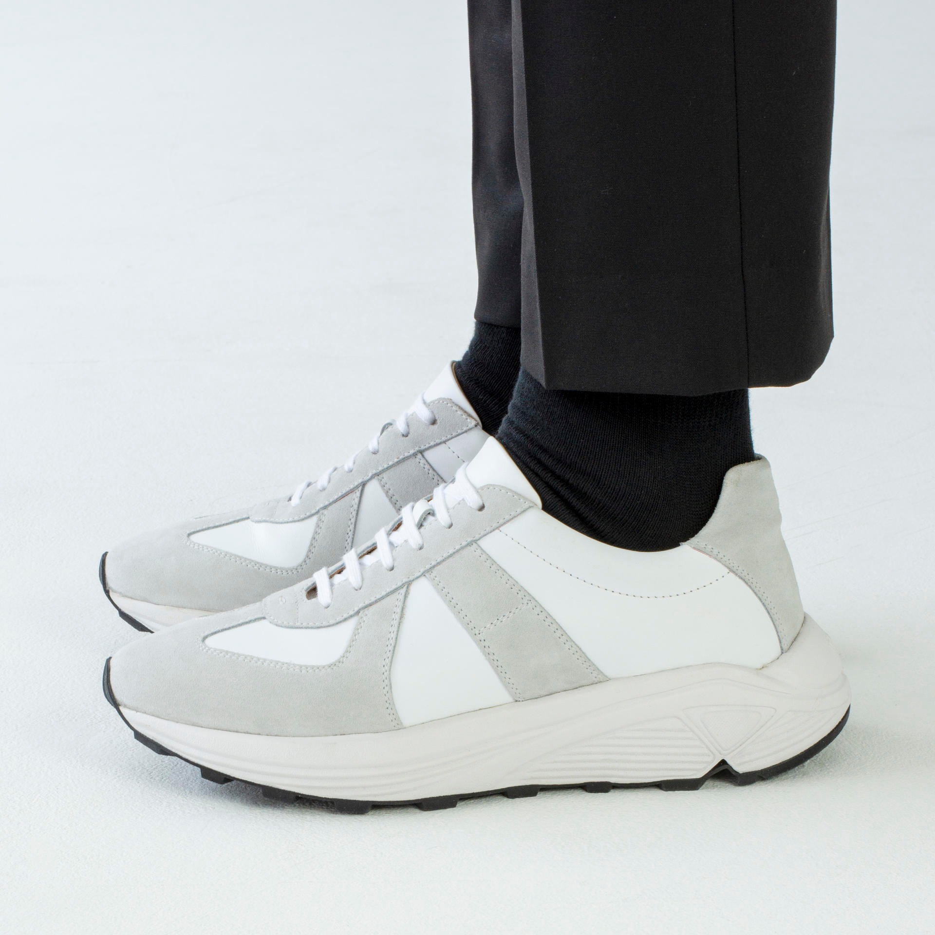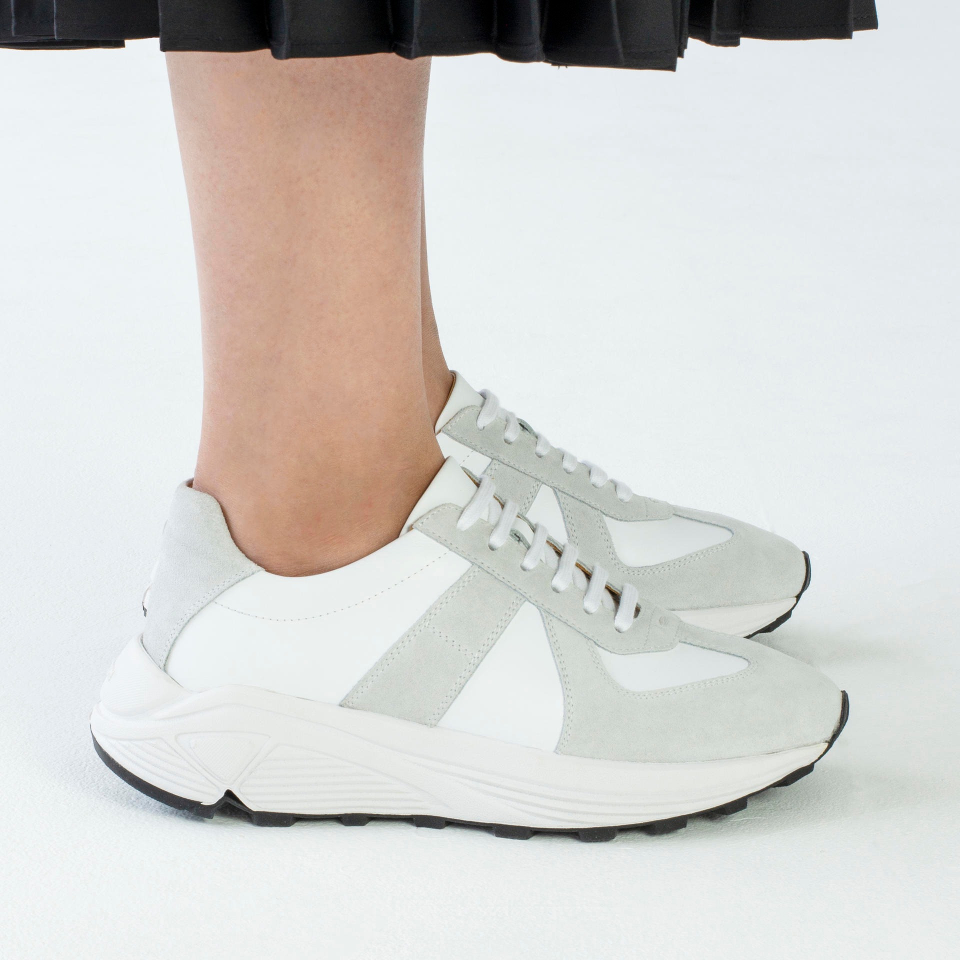 Low-top calf leather runner in white. Round toe. Lace-up closure. Classic six lace holes. Signature 'I' stitching in the back counter. Suede and calf leather lining. Tonal stitching. Heel 5.5cm.