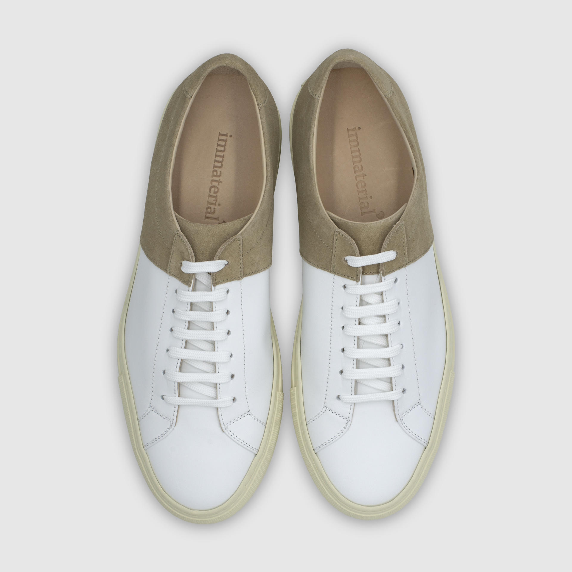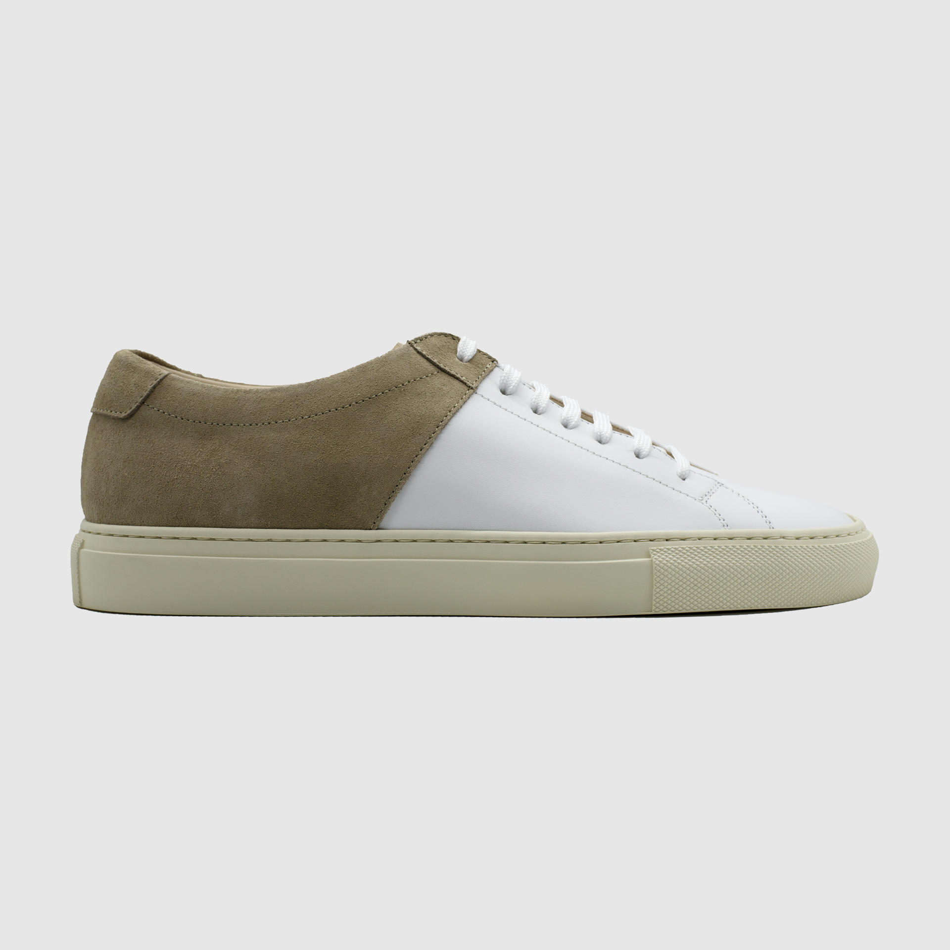 Low-top calf leather sneakers in sand. Round toe. Lace-up closure. Classic seven lace holes. Signature moon stamped on the hidden area of the shoe tongue. Stitch reinforced rubber sole. Suede and calf leather lining. Tonal stitching. Heel 3cm.