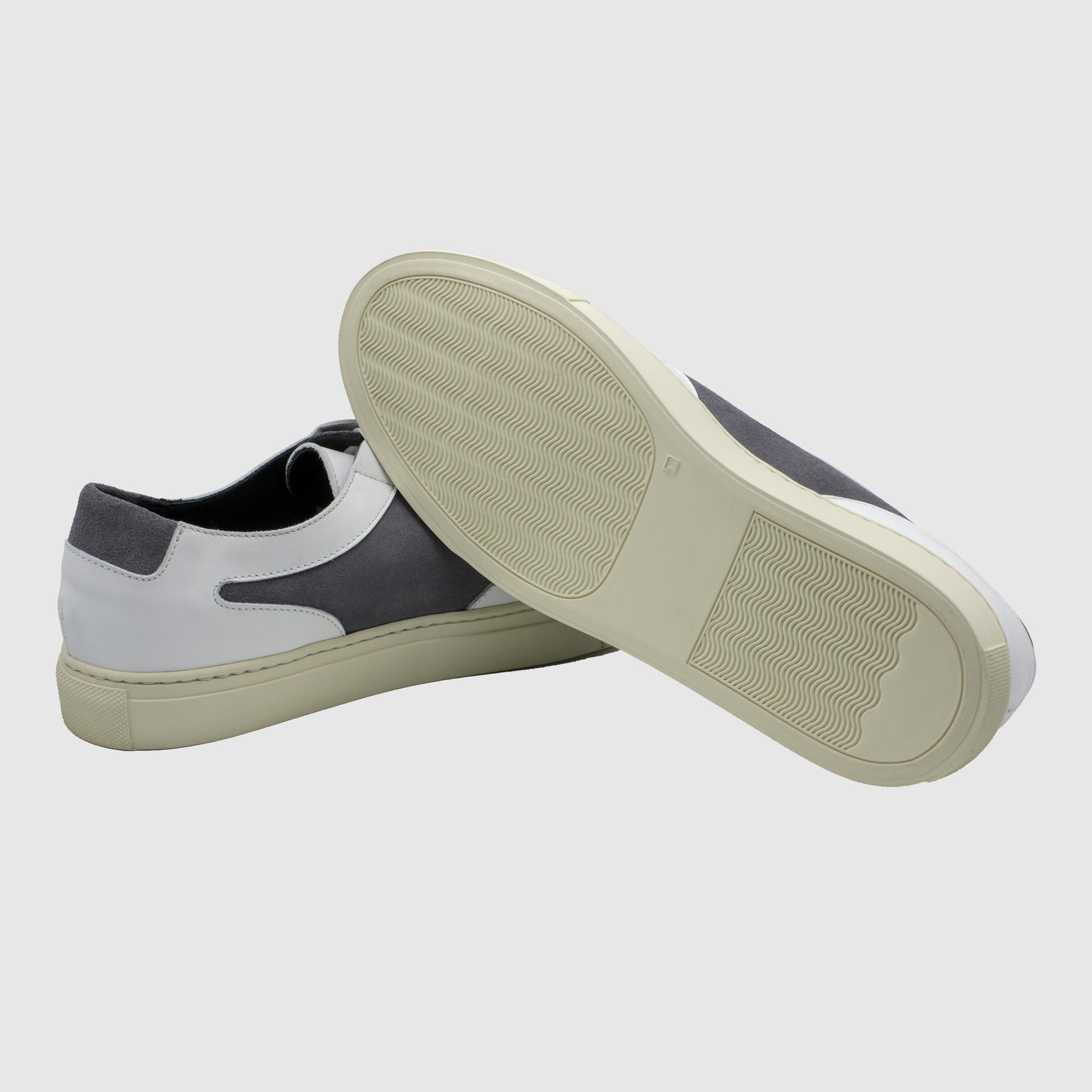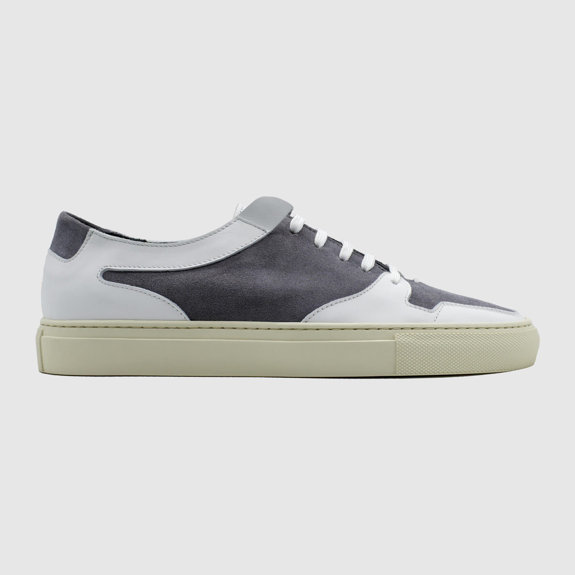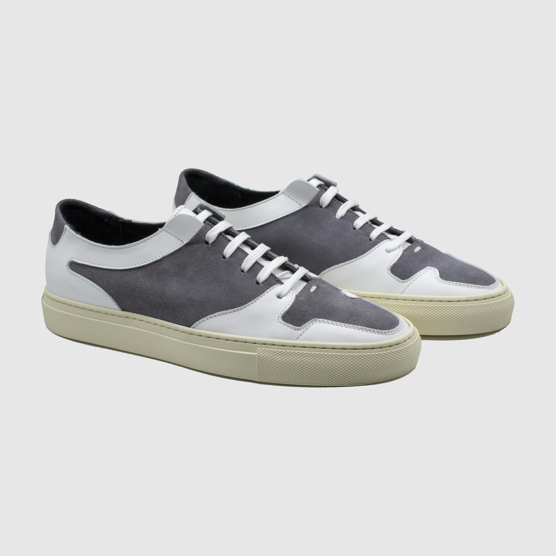 Low-top calf suede sneakers in stone grey. Round toe. Lace-up closure. Classic six lace holes. Vintage rubber sole. Signature moon stamped on the left side of the shoe upper. Stitch reinforced rubber sole. Suede and calf leather lining. Tonal stitching. Heel 3cm.